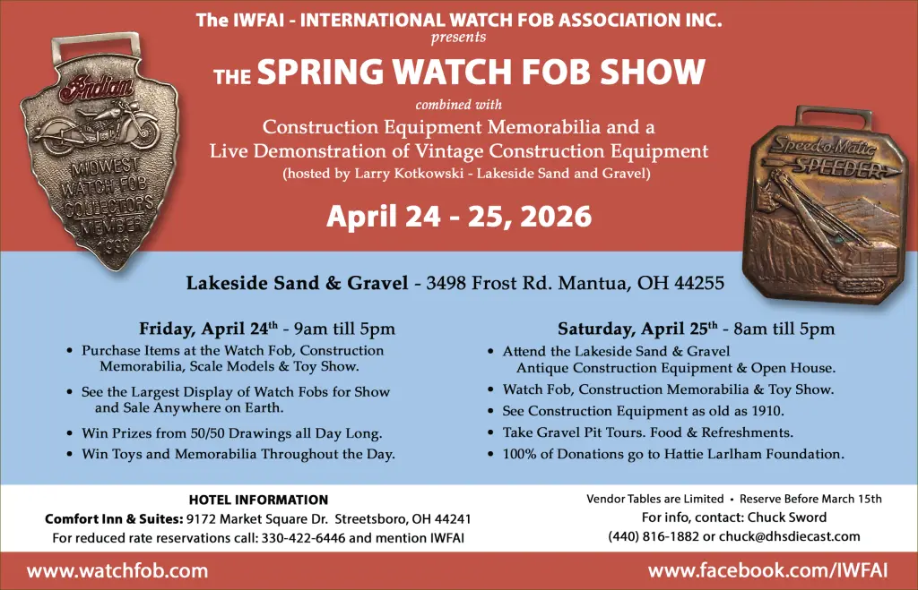 62nd Annual International Watch Fob Association Show & Sale April 24-25/Lakeside Sand & Gravel Open House And Antique Equipment Show April 25 Manuta Ohio