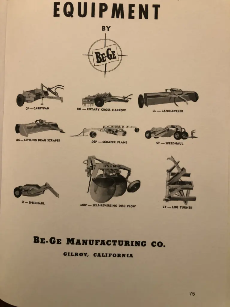 Juiceman, you are my hero. It looks like the Carrypan in the photo. It is almost a square unit with a long tongue. It is buried in a junk pile, but recognizable from the cover picture. The ranch is just 1/4 mile down the road from me and none of the next generation want it so it is going to go up for sale. There are a couple of other things I am interested in but I will talk to the daughter this weekend and see what is going to happen. There is also an Allis Chalmers HD7 with a blade that my partner in crime is interested in. I just talked to associated tractor and they have parts for the BeGe pump on my D2, but the guy did not know of any BeGe equipment. This is somewhat like AUCTION FEVER. Grant.