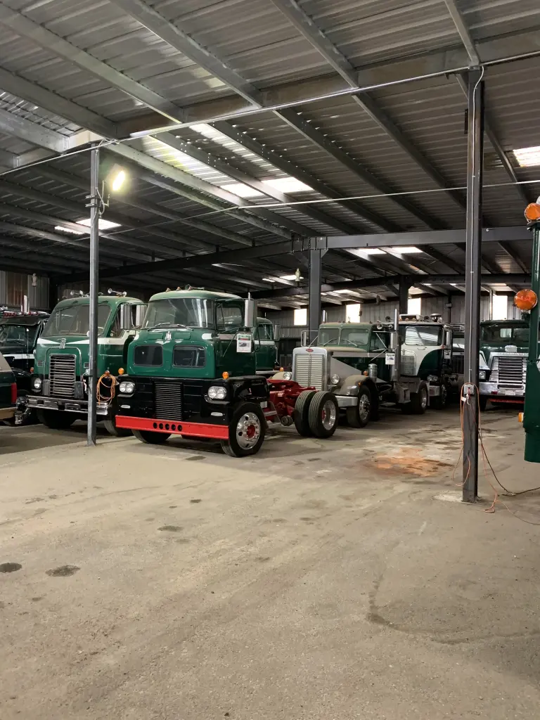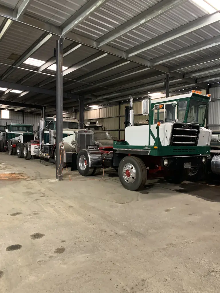 Our host and fellow member Dennis Chan warmly welcomed everyone to his cozy heated "Toy Barn" he calls it, where he stores almost 50 restored big rigs,(mainly Peterbilt of course) and his man cave that accomodates well over 100 people. Many had the opportunity to view other rigs that came in with tractors as well.