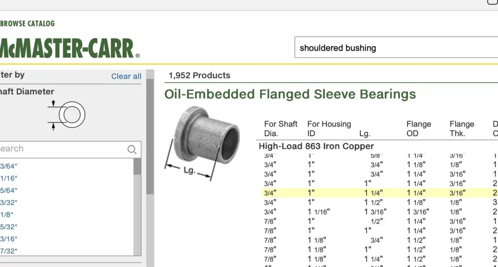 Team, the bronze bushing in this idler assembly is a shouldered bushing. I can't find a generic shouldered bushing that has a large enough OD on the flange shoulder. What do folks think about parting the existing flange off and running that as a separate part from a generic plain bushing which I can for sure get in a generic size (undoubtedly will need some fine tuning but that's no problem. Part looks like this: