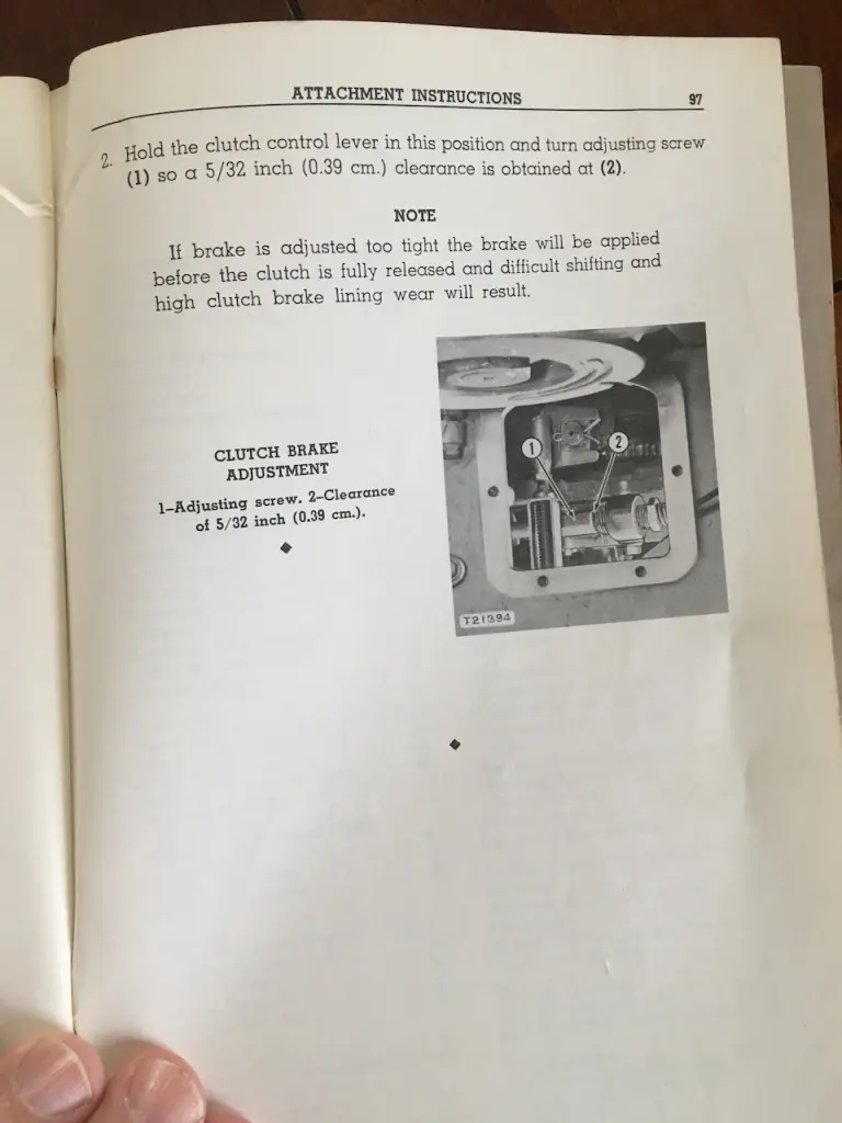 I also see that the compartment holds 14 quarts. The guy I bought this tractor from about three years ago serviced all of the fluids but he didn't get the clutch dialed in correctly. He had trouble finding information on what type of oil to put in there. Unfortunately I forgot what he actually used. When I get back running the tractor this summer I'll get the brake adjusted correctly.