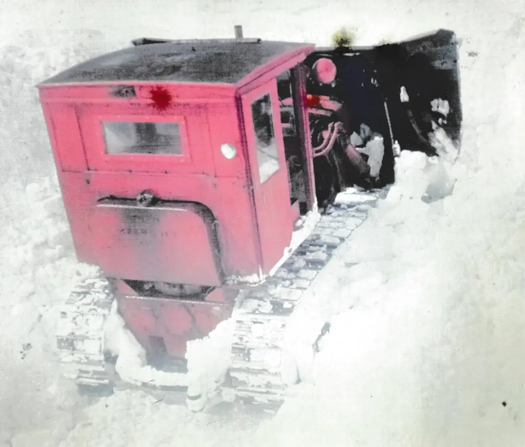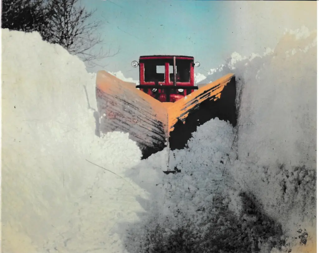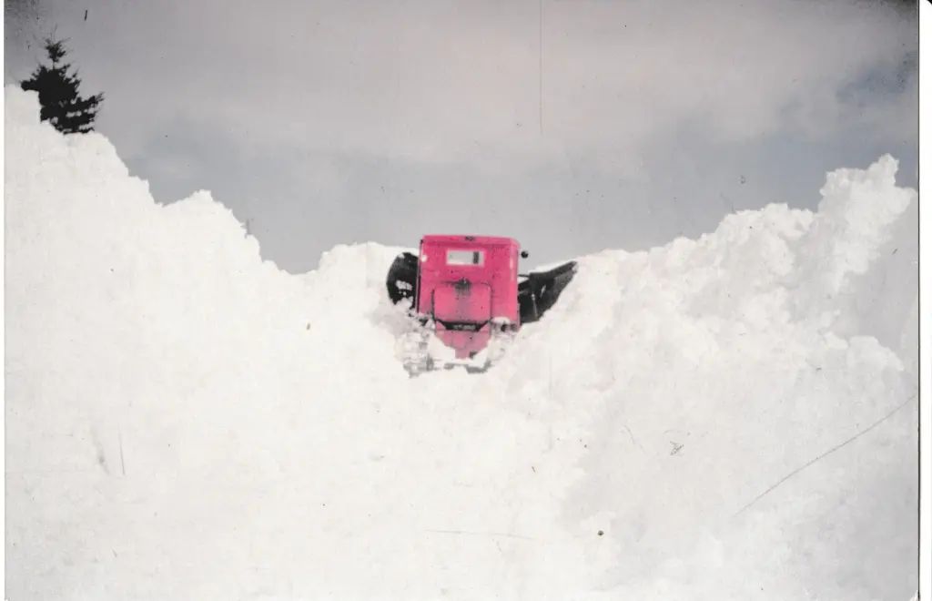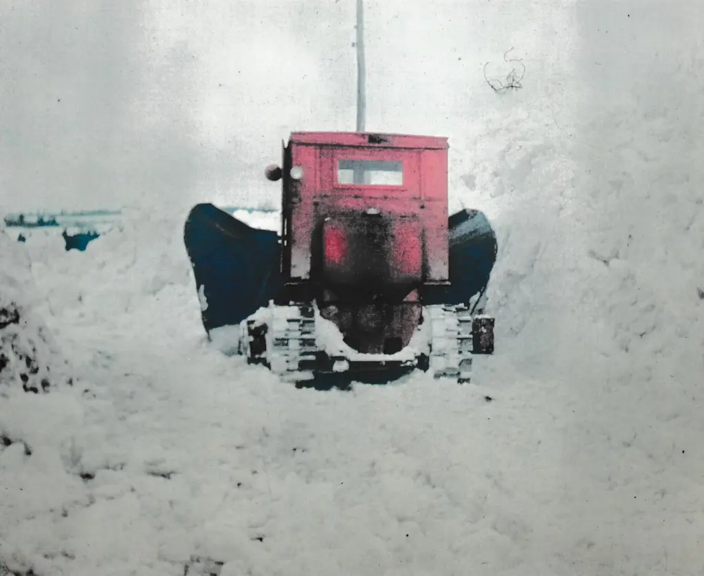 Deep snow! takes a lot of power to push that v-plow in that depth. Time to pull out the big rotary! -- cts