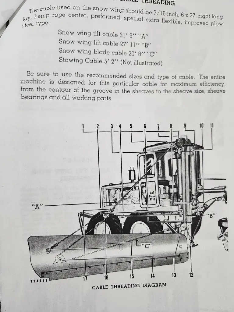 In the photos, in front of the cab, is a two drum winch operated by taking the pto shaft from the scarifier. This is a cable system only. It's made by a company called Ohmsteel (Omaha Steel). They changed to Rivinius but have long since stopped making parts for any of their old wing plows. The other two are hydraulic operated with cable attachments to the wing. Like you referred to. One of the other two is a "newer" Ohmsteel wing and the other is from Craig Manufacturing, out of New Brunswick Canada. The winch operated wing has three positions..wing toe, wing heel and center position for operating both at the same time..But its a complete cable operated system. Works amazing smoth. Rebuilt the winch (Bearings, seals), removed the old shivs and made new pins and bushings on the lathe. Very smooth operating plow. I'll take a few more photos.