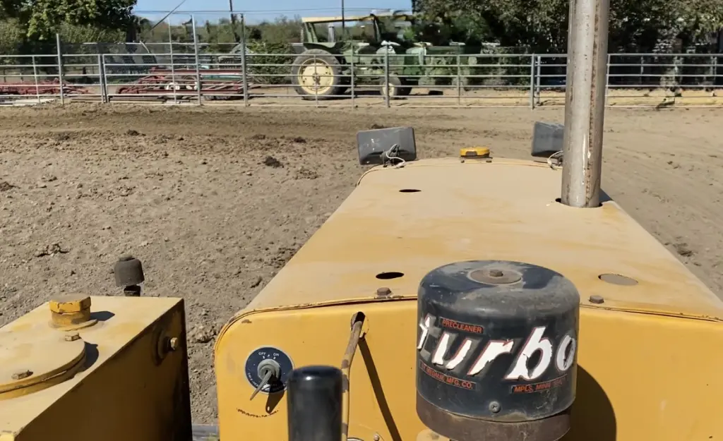 or sprinklers. After running the agri-plane in the orchard both directions behind the D47U or D4D… both top seat mind you. The next operation in the sequence was a wheel tractor with a 36” diameter flat roller filled with water. We had “special” worn out tires with zero tread otherwise you would leave holes for the walnuts to get trapped in. Today it’s just run the flail mower through there and get everything fine enough to blow out of the harvester. On the roller we had a 16” diameter 1/2” wall pipe that the steel yard cut in 1/2 lengthwise that ran right before the roller it was just filled with dirt.
