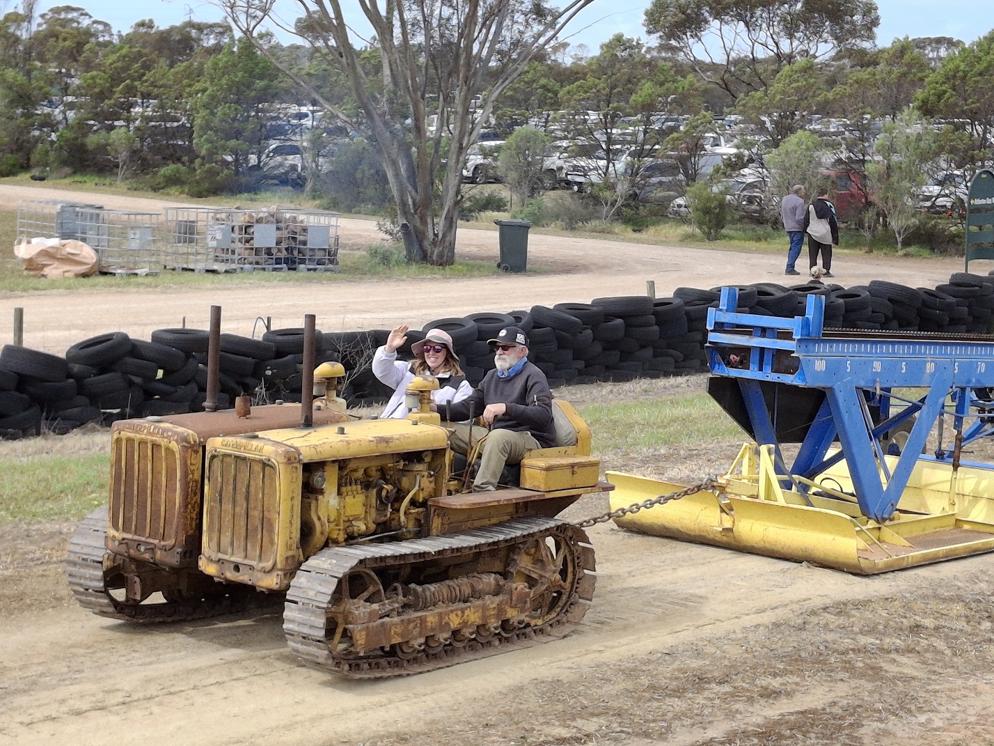 Tractors were a combination of tracked and rubber tyred, pulling Mundoora's sled.