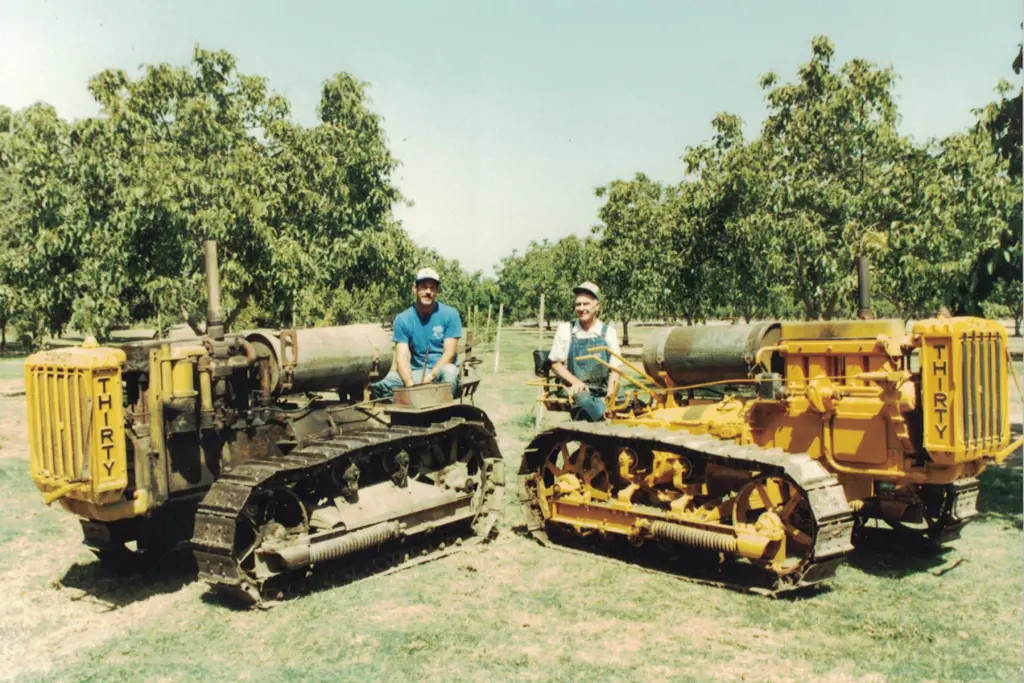 Manifolds are very rough, and as you can see in the pictures you posted, the carbon buildup in the outer "heat riser" portion of the intake that caused so many problems. The Heat Riser was a problem but thought to be necessary due to the fuels used at the time. RE: Serial Numbers -- those on the transmission cover and fenders are only accurate to the machine at time of delivery. I am attaching a picture of two Thirty's, the one I am on was originally a "cruiser", converted to "tailseat" by the owner that gifted it to me. I knew the history of this Thirty and it is now back with the original owners children and grandkids. The Thirty Dad built from a couple of different machines and parts gathered, it is shown as a Wide Gauge, Cat 35 rails/pads, RD-4 equalizer spring, and the machine it was rescued from was a "cruiser". I hope this sheds some light on the issue of using Serial numbers on transmission case and fenders. If I recall correctly, there is a number stamped on the engine crankcase but that only applies to the crankcase. Many of the Wide Gauge Thirty's were used for running gear for the early home built self propelled combines here in the central valley of California - Rice Machines. (The Thirty I am seated on was always a working tractor until Dad sold the orchard and relocated. I have many memories of that tractor in the orchards, thus I can attest to the "catapult" and the starting procedures, do not under estimate the dangers!)