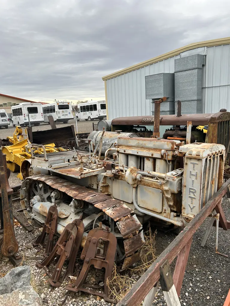 The Thirty pictured here, for an outside display does not look bad to me. I personally would leave it alone. Many parts are still intact which is amazing. Track shoes show extensive wear, this machine has done a lot of work. Rear appears to have some attachment, another feature to be appreciated. Patina is as important as bright shiny new paint in my opinion. --- cts